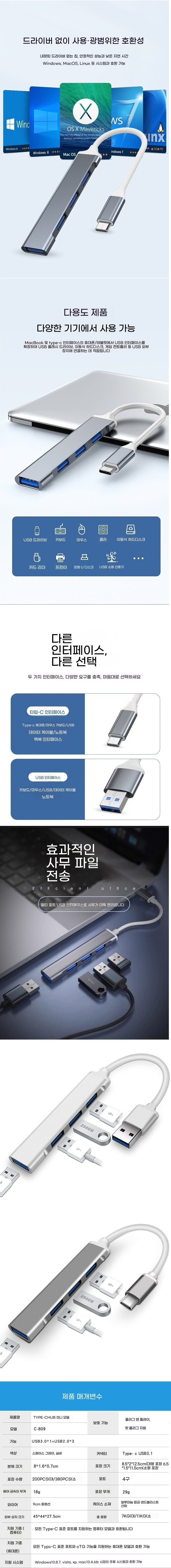 • 옵션 1 인터페이스 수 : USB 3.0 검정색 와이어 회색,Type-C 3.0 화이트 라인 실버,USB 3.0 흰색 와이어 실버,Type-C 3.0 블랙 라인 그레이