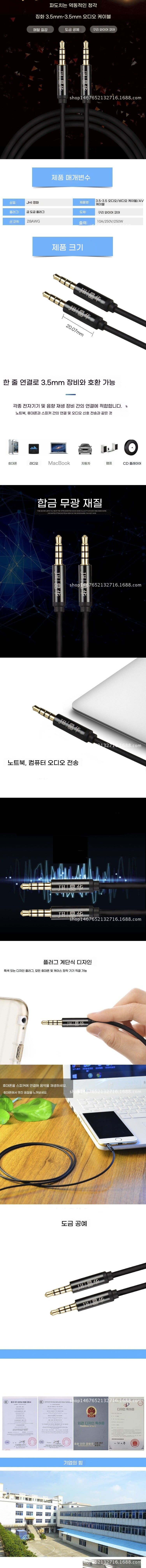 진화 3.5mm 남성-남성 오디오 케이블 4 극 AUX 자동차